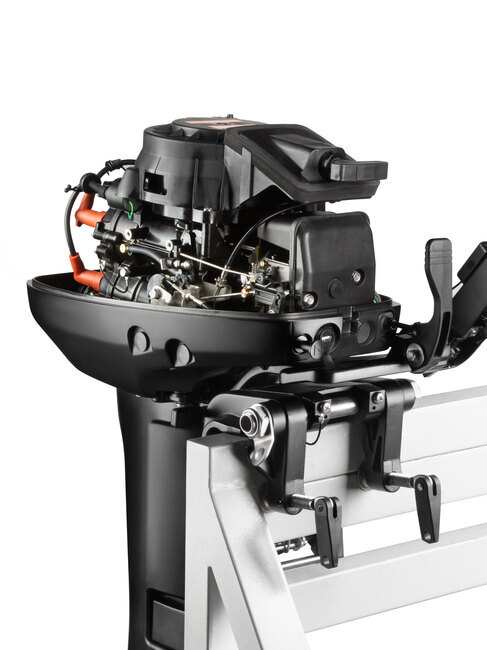 Мотор запускается ручным стартером и управляется стандартным румпелем с поворотной ручкой газа (гашеткой мотоциклетного типа) с антипроскальзывающими насечками.
