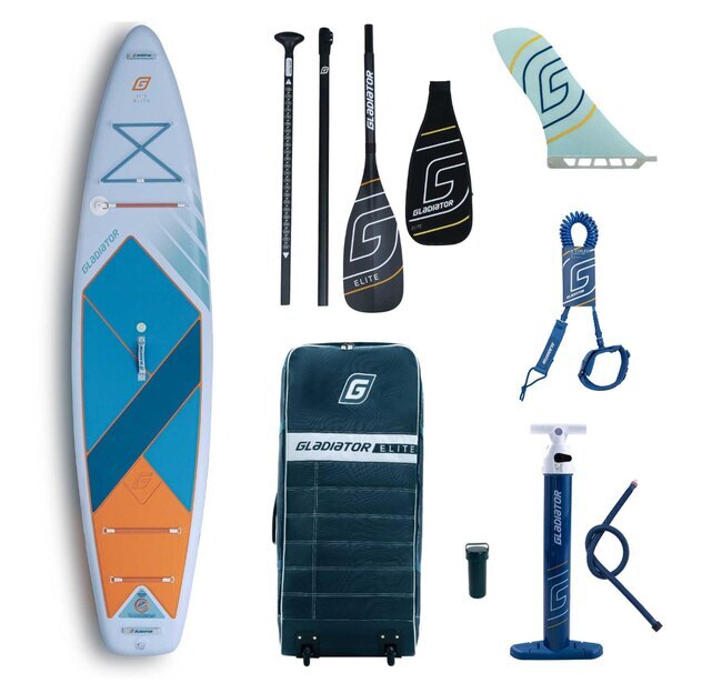 SUP доска Gladiator Elite 11'2 укомплектована стильной вместительной сумкой на колесиках, разборным карбоновым веслом, итальянским насосом двойного действия, оснащенным манометром, отличным лишем и ремкомплектом. Качество SUP досок Gladiator соответствует самым строгим международным стандартам. Для производства наших моделей мы используем только лучшие сертифицированные материалы от ведущих мировых производителей. Это гарантирует безопасность и долговечность наших SUP досок. Каждый SUP борд перед отправкой на склад проходит тестирование в надутом состоянии под максимальным давлением в течение суток. Мы проверяем внешний вид самого SUP и всех его аксессуаров, прочность швов, качество склейки, работоспособность клапанов, крепление деталей. На все наши SUP доски распространяется фирменная гарантия 3 года.