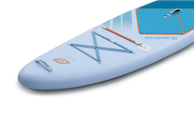 Для производства SUP Gladiator Elite 11’2 мы использовали двухслойный ПВХ, соединенный по методу ламинации, на прочной текстильной основе машинной вязки плотностью 1000 den. Особая структура плетения основы позволила нам одновременно снизить вес и добиться потрясающей жесткости этой доски. Модель дополнительно усилена суперпрочным двойным кантом, изготовленным по инновационной технологии Xstrong edge. Благодаря особой конструкции и методу крепления он дает эффект «литой» доски. Модель отлично держится на воде, очень послушна в управлении и идеально сбалансирована. Кататься на такой — настоящее удовольствие.