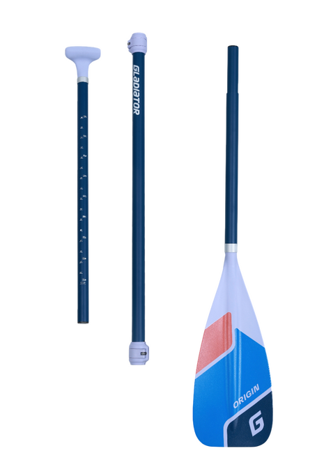 В коробке с SUP доской Gladiator Origin 12’6T есть все необходимое - вместительная транспортировочная сумка, качественный насос двойного действия, лиш с карабинами, разборное весло из фибергласса с нейлоновой лопастью и ремкомплект.